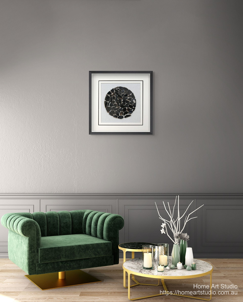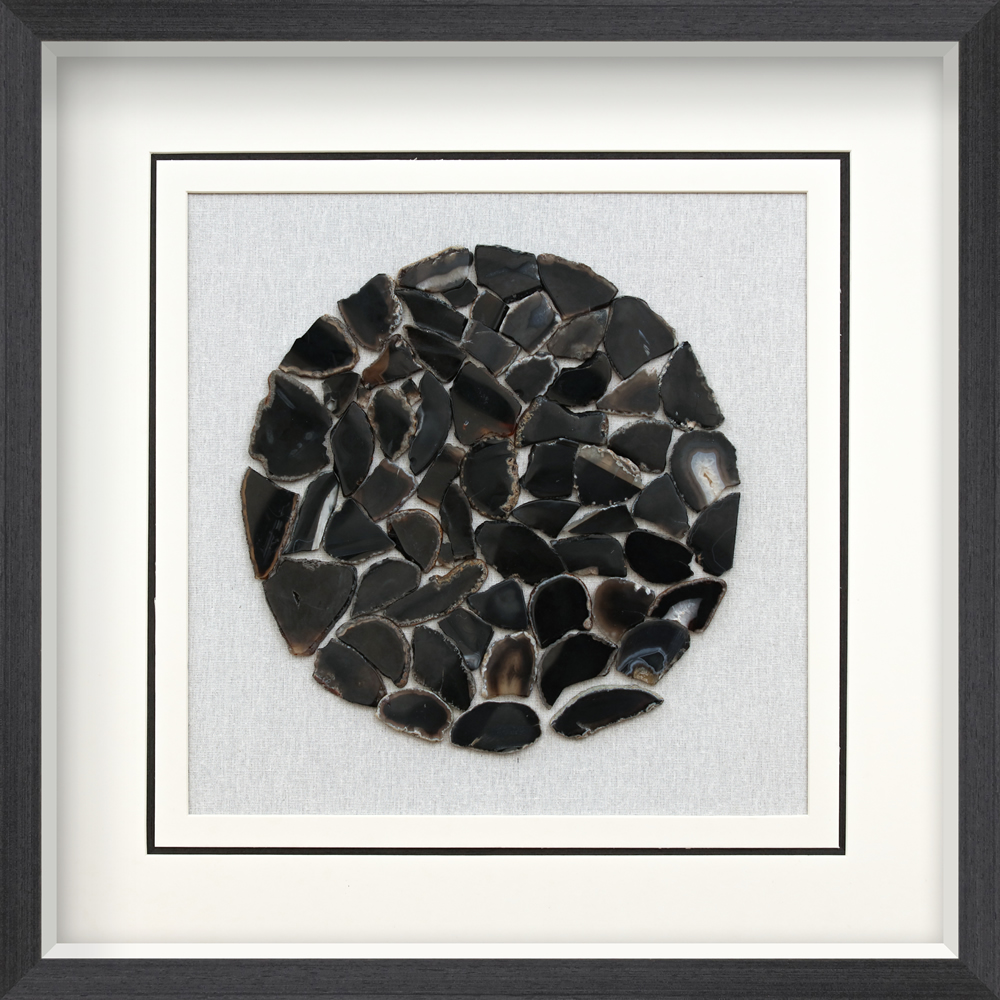 This shadow box wall art features black agate circle and is designed to add calm, layered texture to your space.